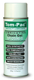 Chain Gel inherits the characteristics of the Bearing Gel; now conveniently packaged in an aerosol format. No more dripping or melting! The chain gel is a tenacious, high and low temperature lubricating Gel that stays in place, providing chains with a protective coating of synthetic lubrication. Chain Gel is the perfect lubricant for applications exposed to extreme temperatures, wet environments or areas where extended lubrication periods are required.